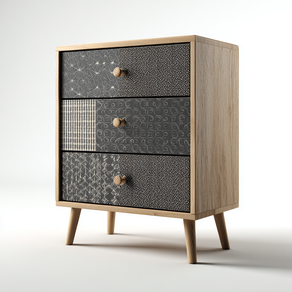 Cassettiera con 3 cassetti 50x40x75 cm - grigio scuro-rovere naturale - design moderno