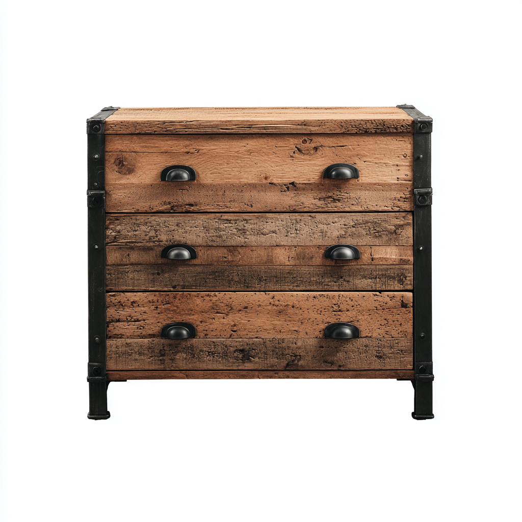 Comò - Legno e metallo - 80x40x85 cm - Naturale - Adatto per soggiorno - Design rustico industriale
