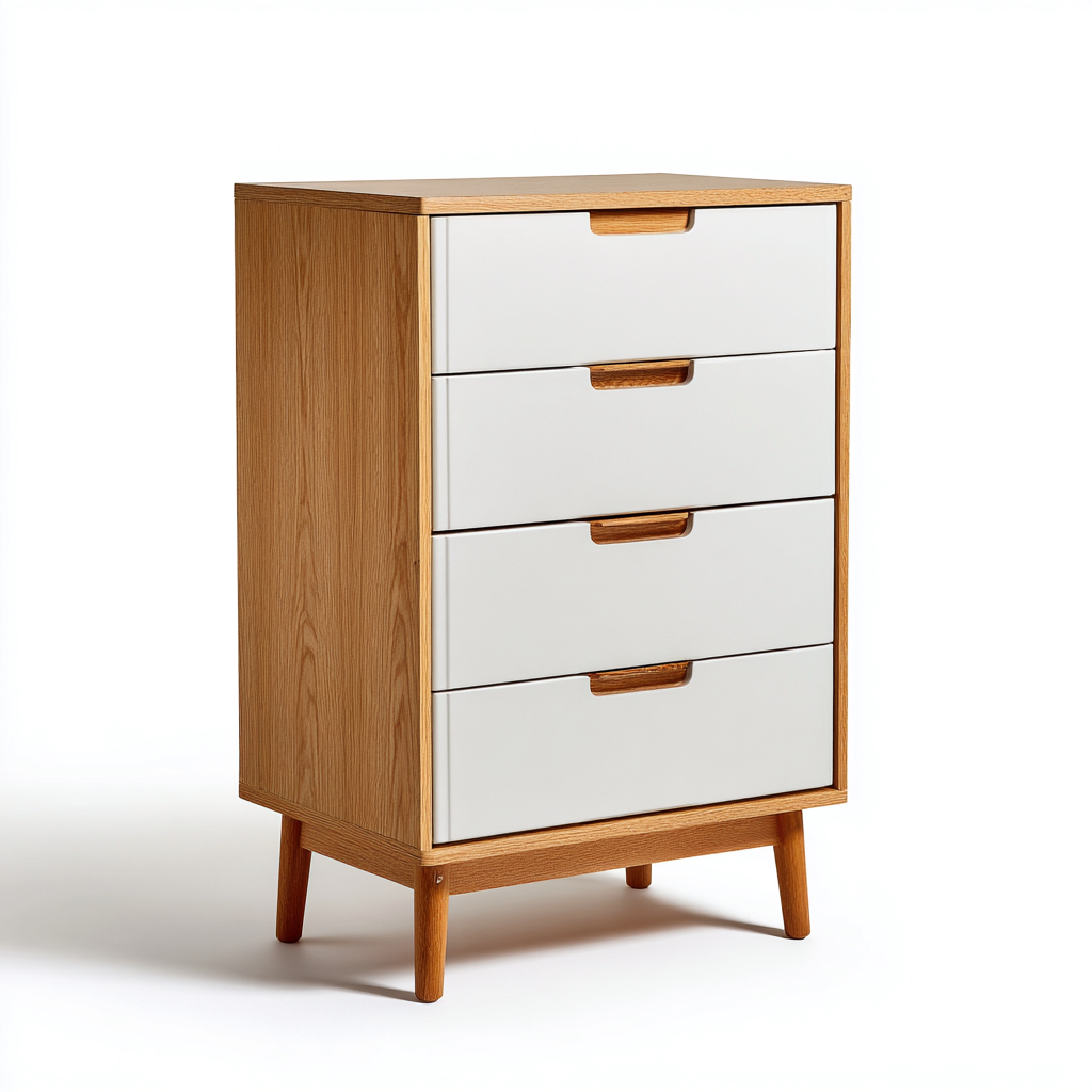 Cassettiera alta con 4 cassetti 40x40x90 cm - bianco-rovere naturale - design moderno