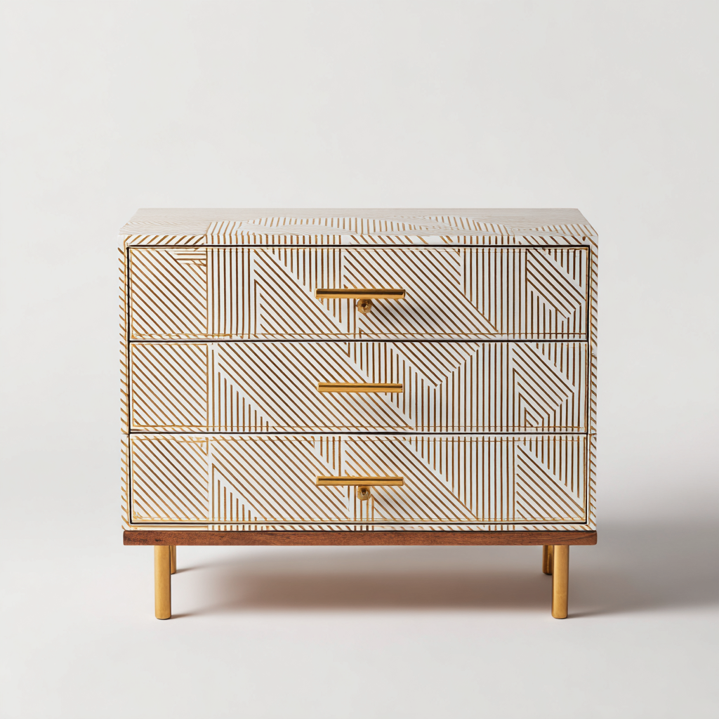 Cassettiera con 3 cassetti 80x40x75 cm - bianco-oro - design geometrico