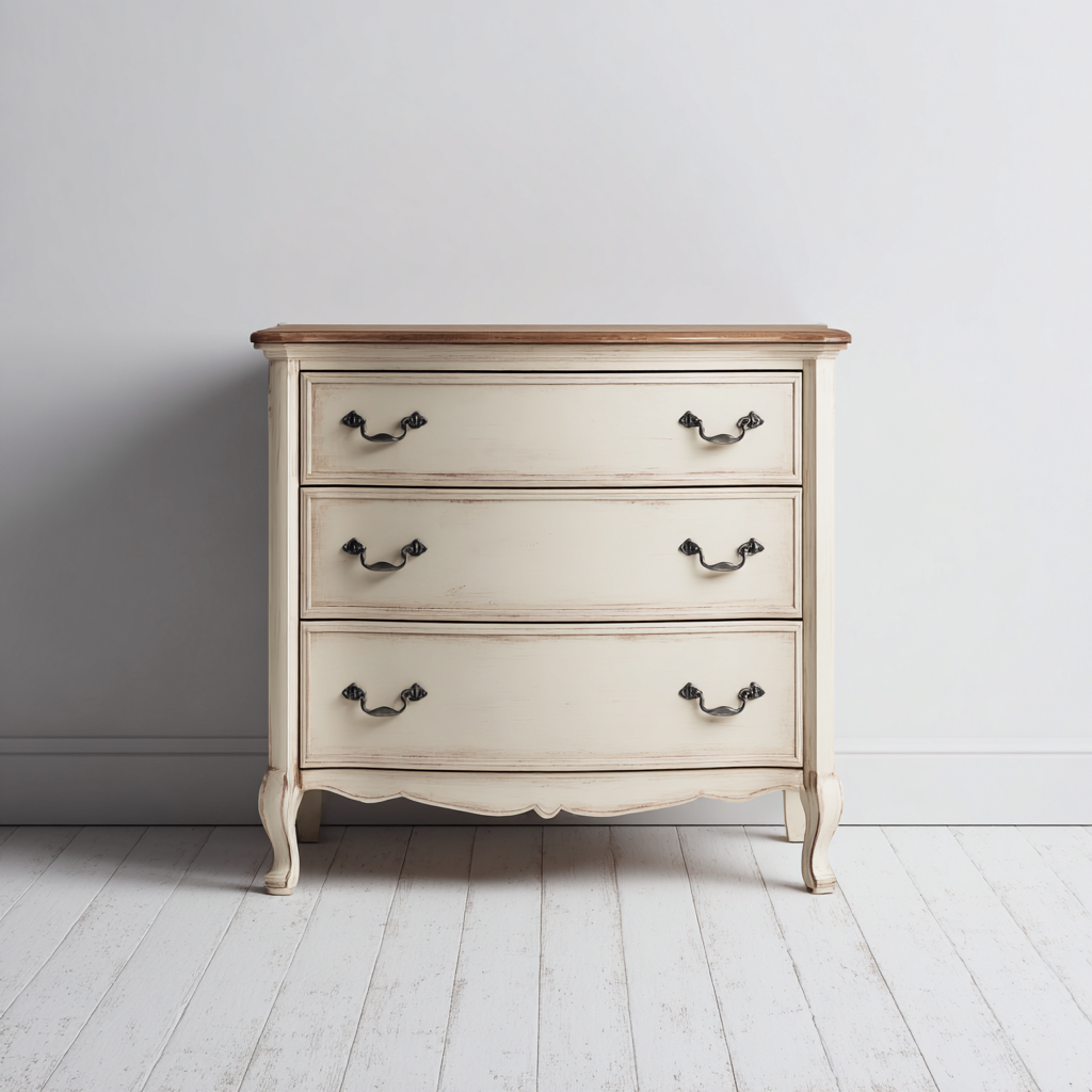 Cassettiera vintage con 3 cassetti 70x40x80 cm - crema-legno naturale - design rustico