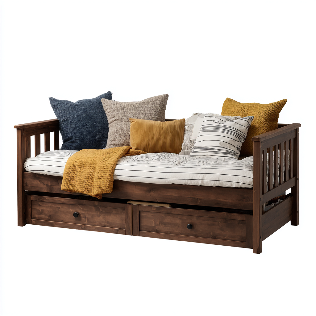 Divano letto in legno massello per soggiorno 200x90x75 cm - marrone - design moderno
