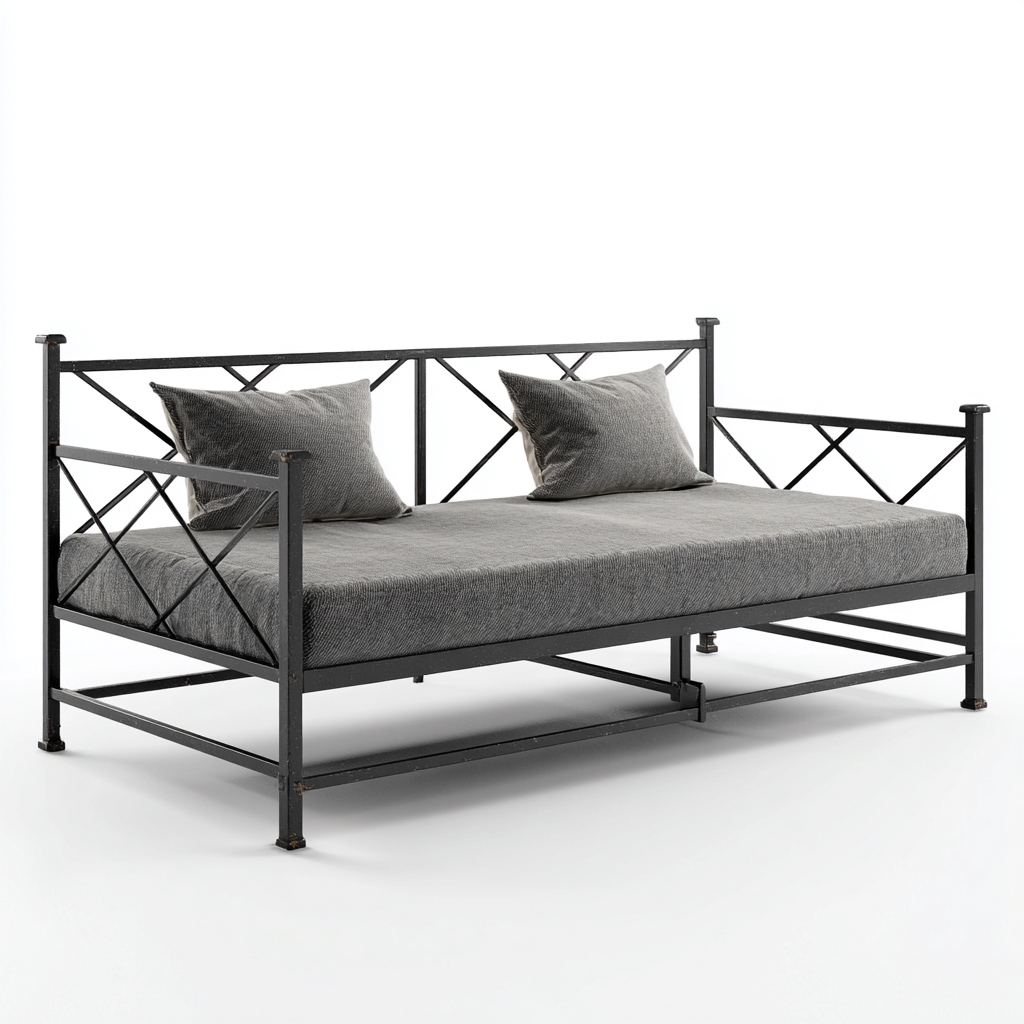 Divano letto metallo tessuto 190x90x80 cm - Nero-Grigio - Design moderno