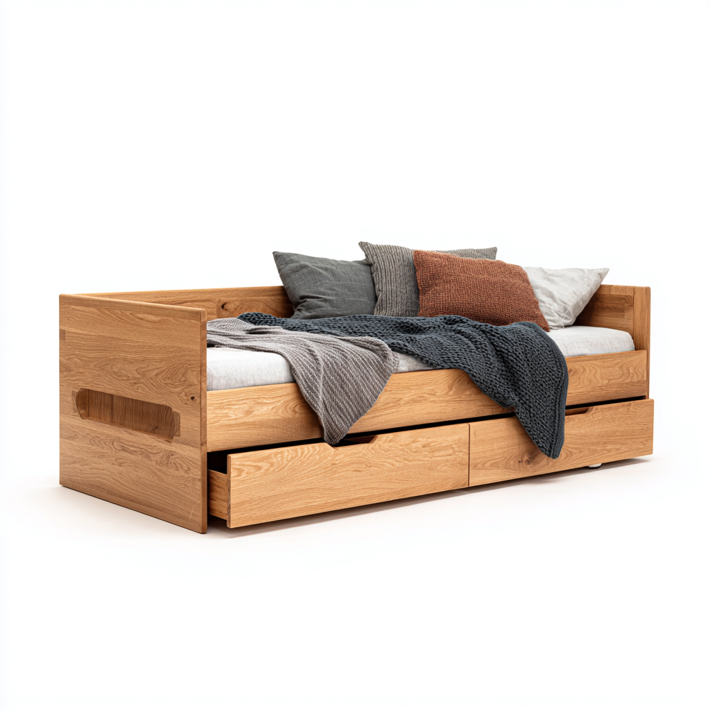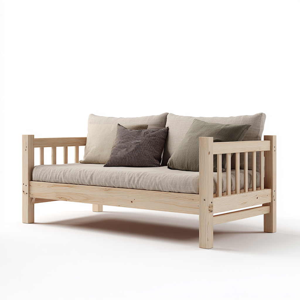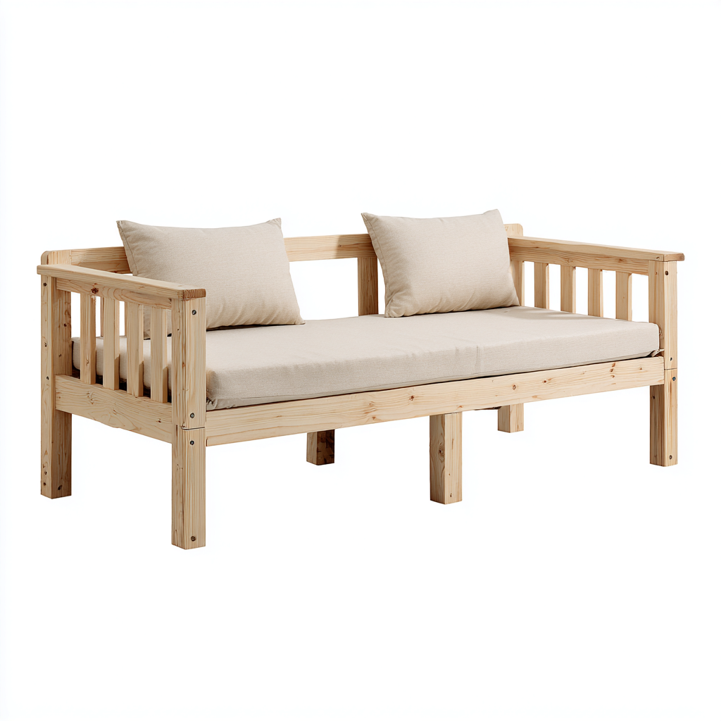 Divano letto in legno naturale per soggiorno 200x90x75 cm - naturale - design scandinavo