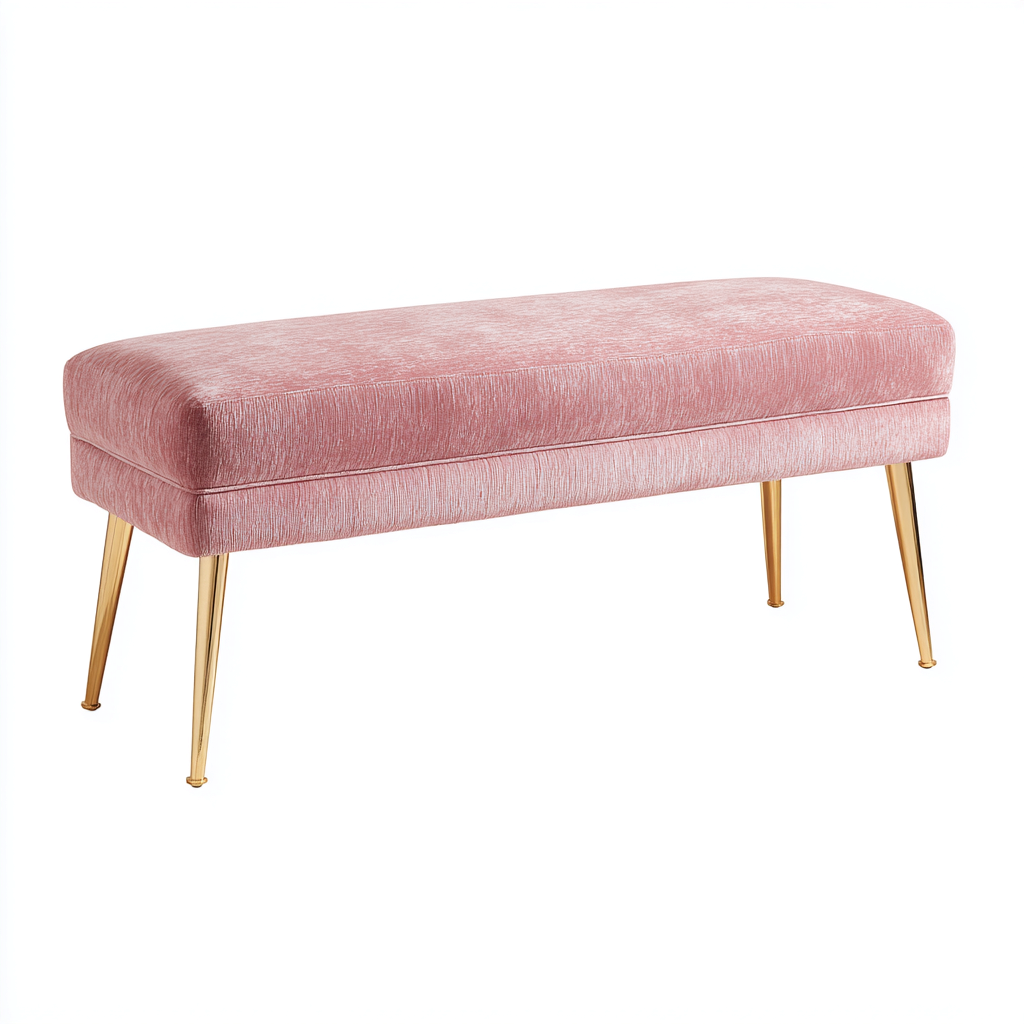 Panca imbottita in tessuto vellutato struttura in metallo 120x40x45 cm - rosa - stile moderno
