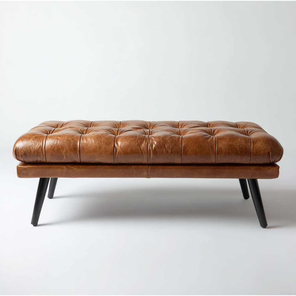 Panca imbottita in pelle struttura in legno 120x40x45 cm - marrone - stile moderno