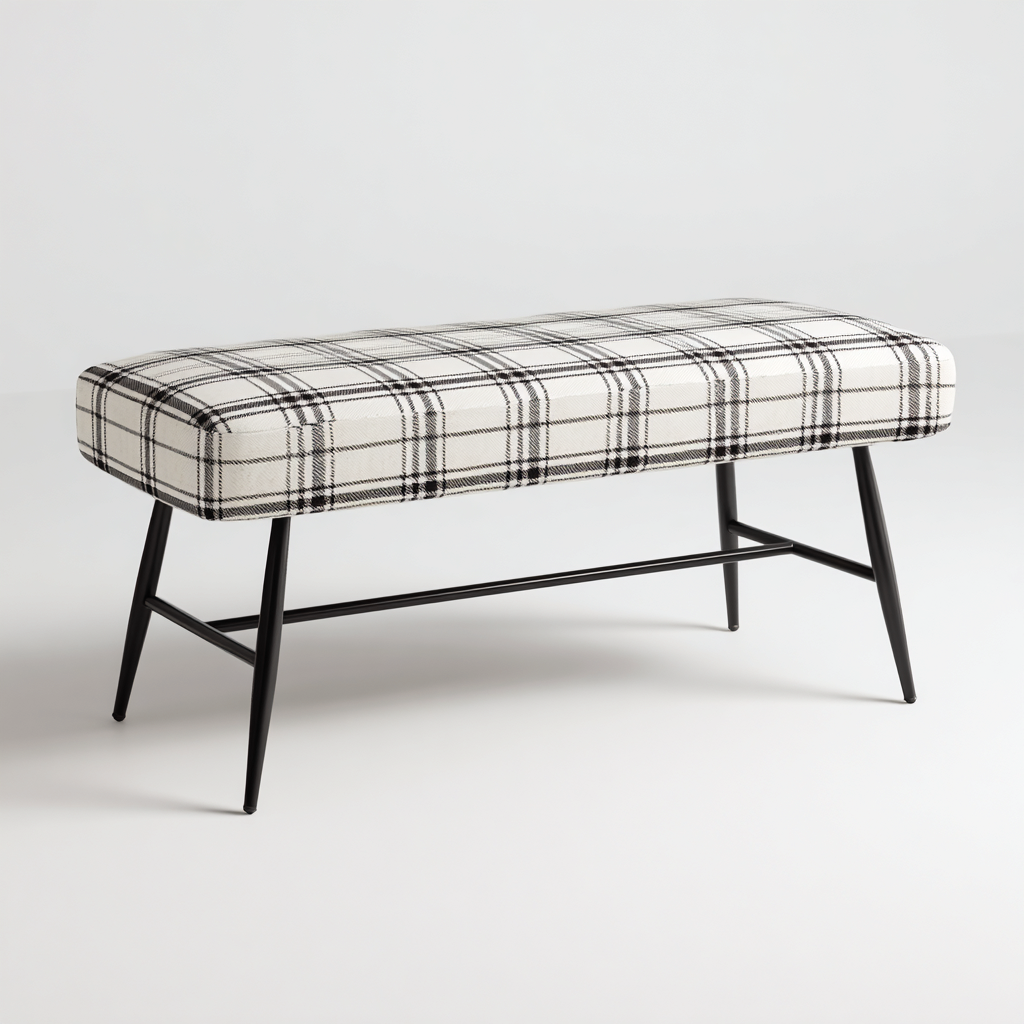 Panca imbottita tessuto a quadri struttura in metallo 120x40x45 cm - beige-nero - design moderno