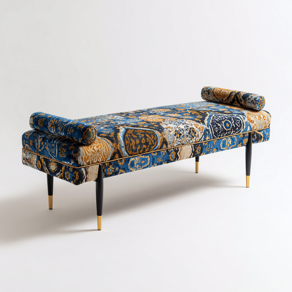 Panca imbottita tessuto decorativo 140x45x45 cm Blu-Oro Design moderno