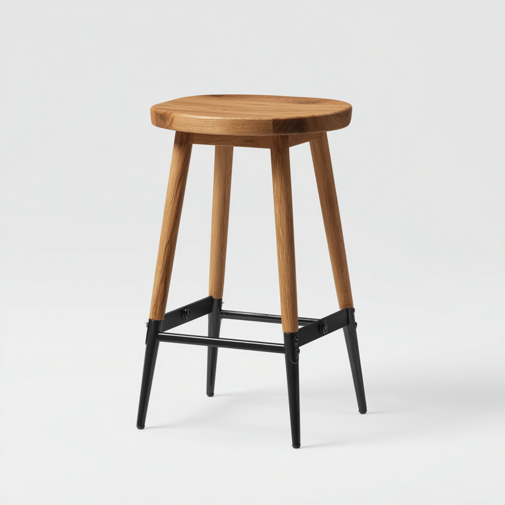 Sgabello da bar con seduta in legno massello 36x36x75 cm - legno naturale-nero - design industriale