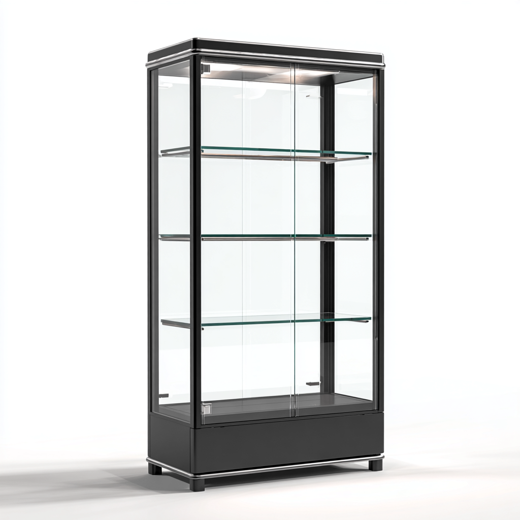 Vetrina espositiva in metallo e vetro 80x40x180 cm - nero - design moderno