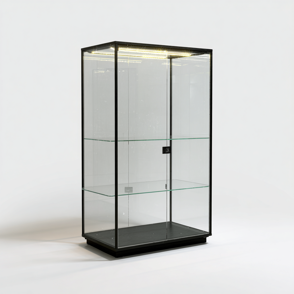 Vetrina espositiva illuminata in metallo e vetro 80x40x190 cm - nero - design moderno
