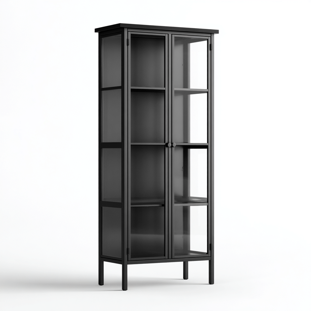 Vetrina metallo vetro 45x40x180 cm Nero Design moderno