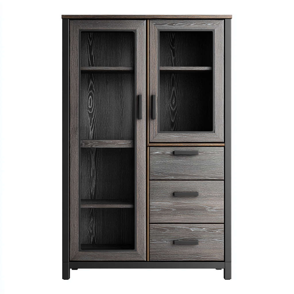 Vetrina soggiorno in legno e vetro 90x40x160 cm - grigio scuro - design moderno per soggiorno