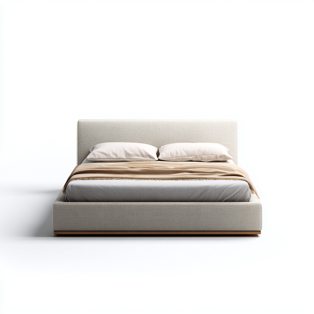 La struttura è rivestita in tessuto di colore beige con finitura uniforme. La testiera imbottita presenta una superficie regolare e una lavorazione curata, pensata per garantire stabilità e una sensazione confortevole.