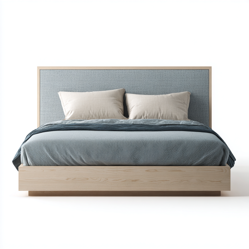 Questo letto matrimoniale è progettato per valorizzare la camera da letto con un'estetica sobria e contemporanea. La testiera ampia rivestita in tessuto e la struttura in legno naturale creano un equilibrio visivo elegante e rilassante, ideale per ambienti moderni.