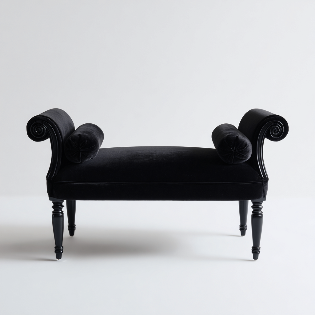 Questa panca imbottita dal design classico è ideale per valorizzare ambienti come il soggiorno, la camera da letto o l'ingresso. Le forme eleganti con braccioli arrotondati richiamano uno stile raffinato e decorativo.