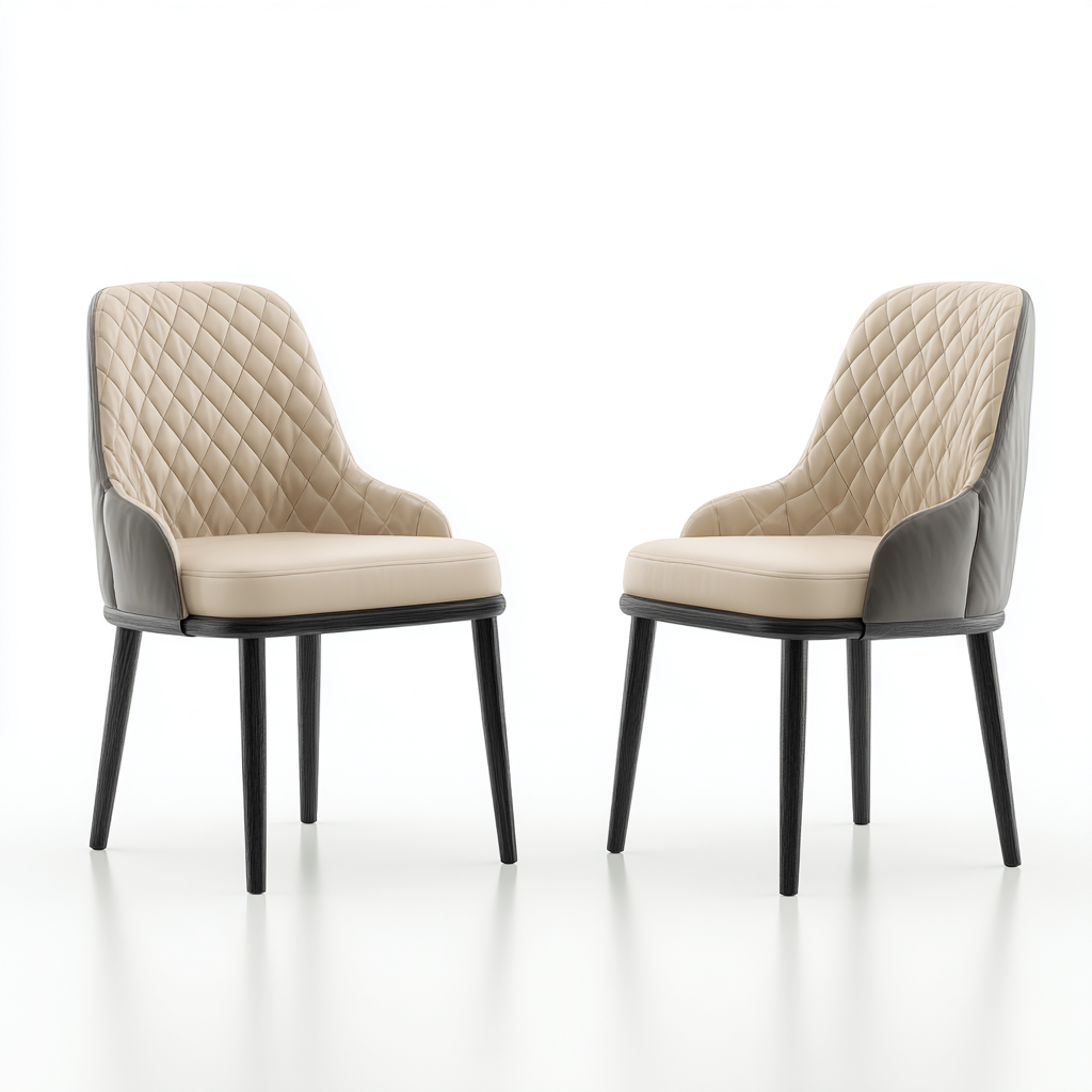 Sedia da pranzo progettata per ambienti domestici come sala da pranzo e cucina. La seduta imbottita e lo schienale ergonomico garantiscono un comfort adeguato all'uso quotidiano, mantenendo un'estetica sobria e ordinata.