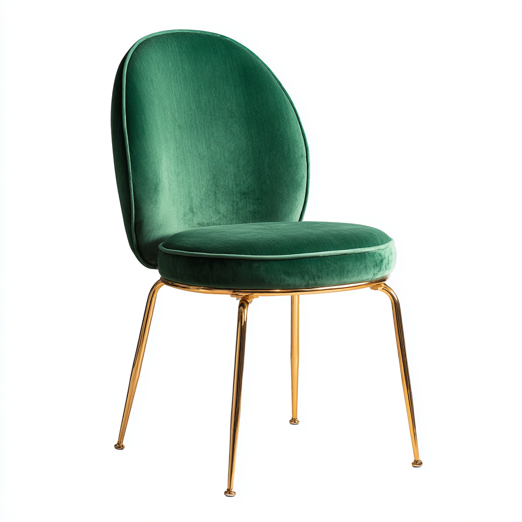 La struttura è realizzata in metallo con finitura dorata, abbinata a un rivestimento in velluto verde dalla texture morbida e uniforme. L'imbottitura interna assicura una seduta confortevole e resistente nel tempo.