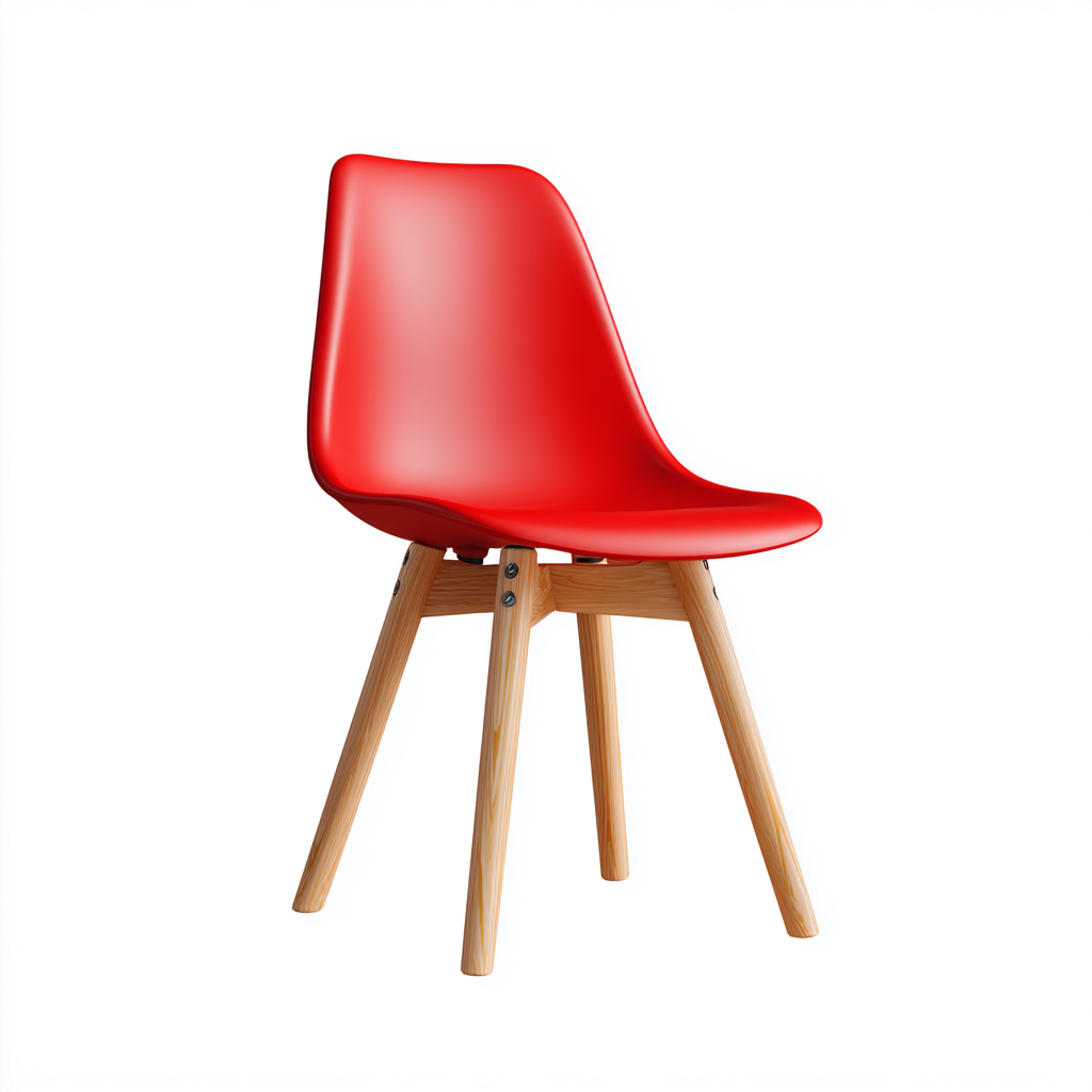 La seduta è realizzata in plastica di colore rosso con superficie liscia e resistente. Le gambe in legno offrono stabilità strutturale e un aspetto naturale, facilmente abbinabile a diversi stili di arredo.