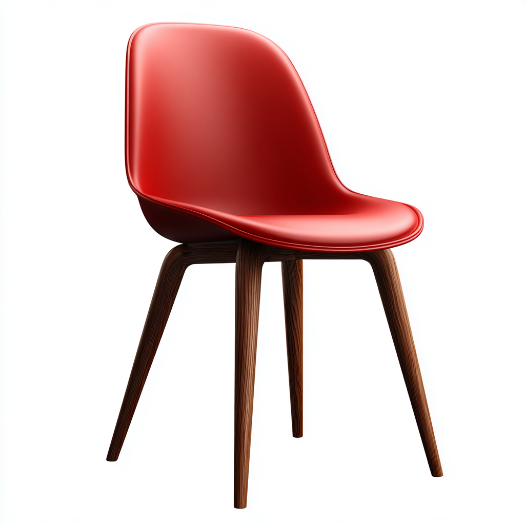 La seduta è realizzata in materiale plastico rigido di colore rosso con superficie liscia, mentre le gambe sono in legno con finitura naturale che assicura stabilità e un contrasto estetico equilibrato.