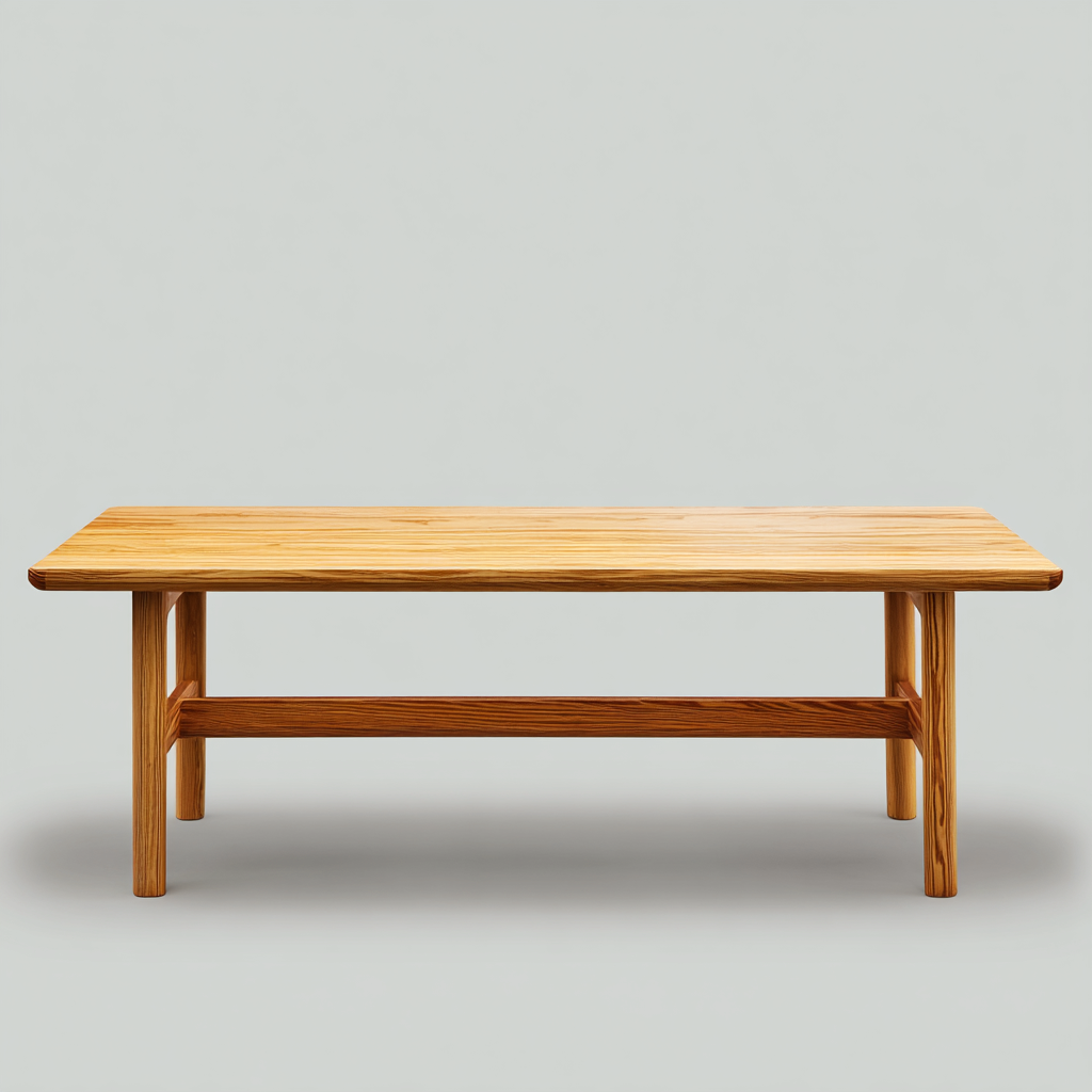 Questo tavolo da pranzo dal design moderno presenta una struttura lineare con piano rettangolare, ideale per l'utilizzo quotidiano in soggiorno o sala da pranzo. L'estetica essenziale valorizza la naturalezza del legno.